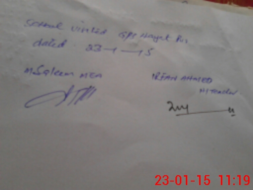 | Name: IR**** AH**** Designation: (School Headmaster's/Headmistress's) PST Phone/Cell Number: 03**** |