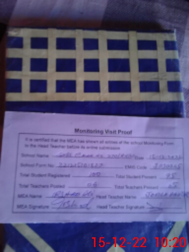 | Attendance Register | Head Teacher | MEA with School | Visit Proof |