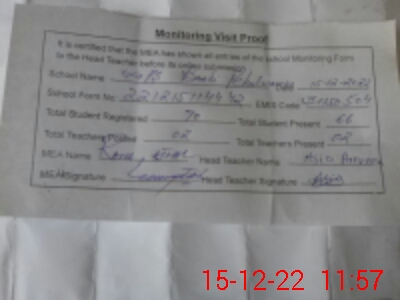 | Attendance Register | Head Teacher | MEA with School | Visit Proof |
