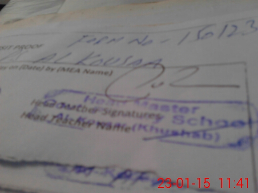 | Name: Za**** Iq**** Designation: (School Headmaster's/Headmistress's) Pst Phone/Cell Number: 03**** |