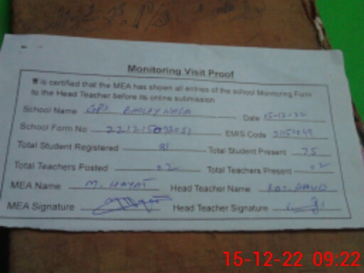 | EMIS Code: 31150049 | Name of School: GPS BHOLEY WALA | |||