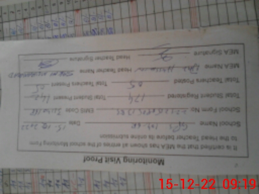 | Certified that this School was Inspected by the Undersigned MEA/DMO Today and the Information Stated Above is as Per Record. | |||||