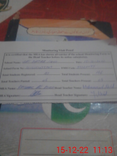 | Certified that this School was Inspected by the Undersigned MEA/DMO Today and the Information Stated Above is as Per Record. | |||||