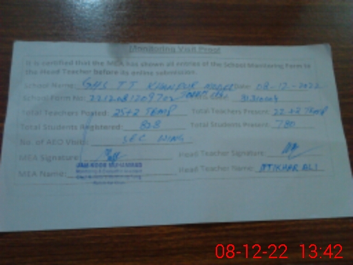 | EMIS Code: 31310004 | Name of School: GHS TT KHANPUR MODEL TOWN B KHANPUR | |||