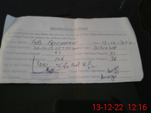 | EMIS Code: 31310218 | Name of School: GPS PROCHRAN (After Noon) | |||