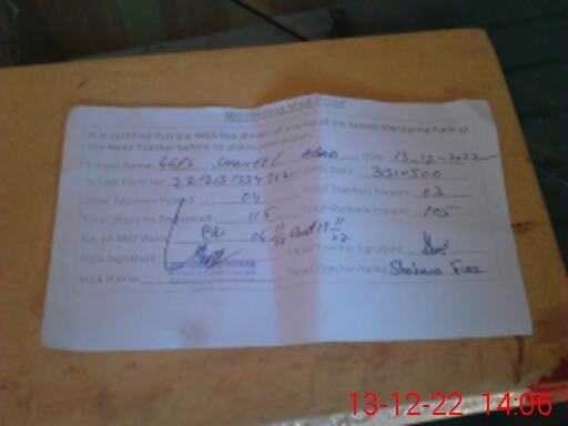 | Attendance Register | Head Teacher | MEA with School | Visit Proof |