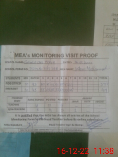 | Certified that this School was Inspected by the Undersigned MEA/DMO Today and the Information Stated Above is as Per Record. | |||||