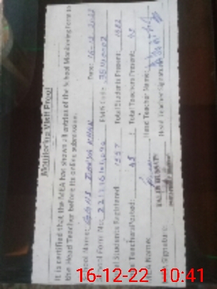 | Attendance Register | Head Teacher | MEA with School | Visit Proof |