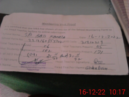 | Certified that this School was Inspected by the Undersigned MEA/DMO Today and the Information Stated Above is as Per Record. | |||||