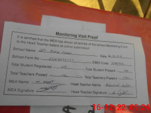 | Certified that this School was Inspected by the Undersigned MEA/DMO Today and the Information Stated Above is as Per Record. | |||||