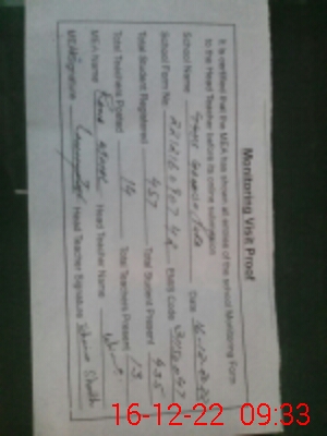 | Attendance Register | Head Teacher | MEA with School | Visit Proof |