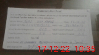 | Attendance Register | Head Teacher | MEA with School | Visit Proof |