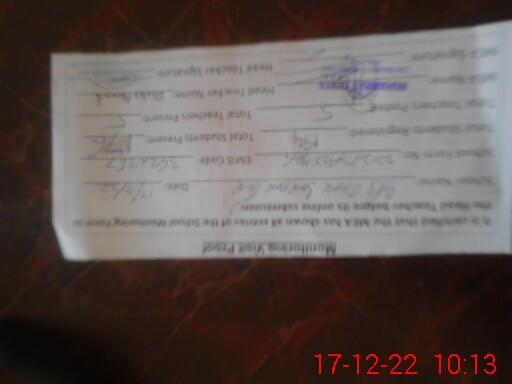 | Name: SH**** AH**** Designation: (School Headmaster's/Headmistress's) PST Phone/Cell Number: 03**** |
