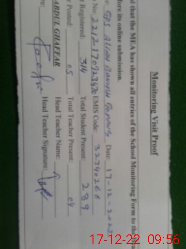| EMIS Code: 32340266 | Name of School: GPS ALLAH BAKHSH GOPANG | |||