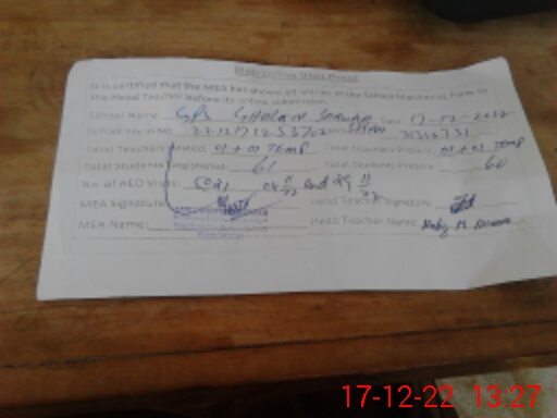 | Attendance Register | Head Teacher | MEA with School | Visit Proof |