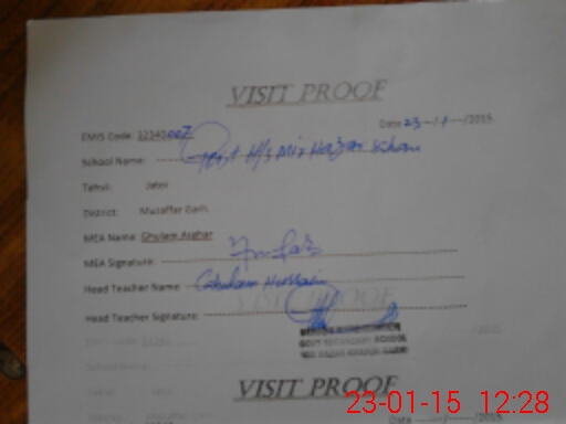 | Attendance Register | Head Teacher | MEA with School | Visit Proof |