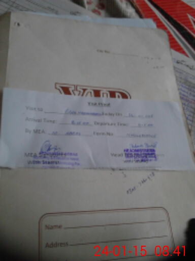 | Monitoring Date: 24-01-2015 | Start Time: 24-01-2015 08:20 AM | End Time: 24-01-2015 08:42 AM | Name of MEA: Mu**** Ab**** | |