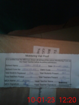 | Attendance Register | Head Teacher | MEA with School | Visit Proof |