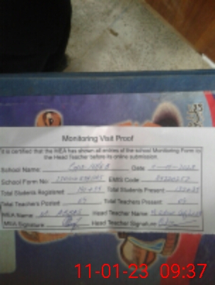 | Attendance Register | Head Teacher | MEA with School | Visit Proof |