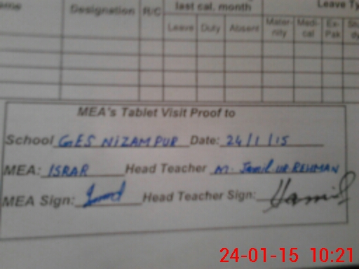 | Attendance Register | Head Teacher | MEA with School | Visit Proof |