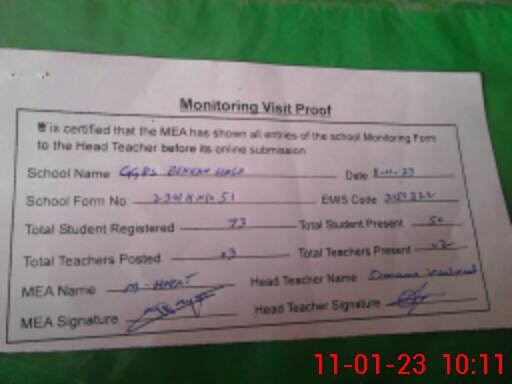 | EMIS Code: 31150322 | Name of School: GGPS BEHKAN WALA | |||