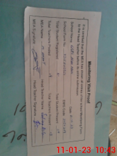 | Certified that this School was Inspected by the Undersigned MEA/DMO Today and the Information Stated Above is as Per Record. | |||||