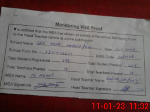| Certified that this School was Inspected by the Undersigned MEA/DMO Today and the Information Stated Above is as Per Record. | |||||