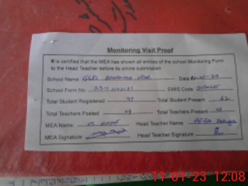 | Attendance Register | Head Teacher | MEA with School | Visit Proof |