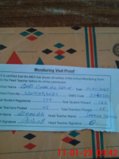 | Attendance Register | Head Teacher | MEA with School | Visit Proof |