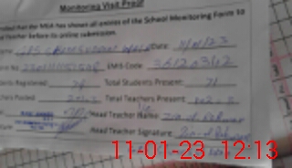 | Attendance Register | Head Teacher | MEA with School | Visit Proof |