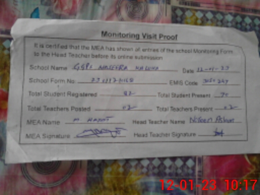 | EMIS Code: 31150247 | Name of School: GGPS NASEERA KALU KA | |||