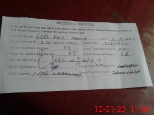 | EMIS Code: 31310620 | Name of School: GGPS RAIS KHAMISA | |||