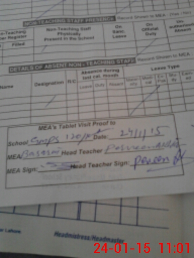 | Attendance Register | Head Teacher | MEA with School | Visit Proof |