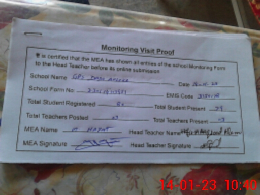 | Attendance Register | Head Teacher | MEA with School | Visit Proof |