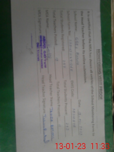 | Certified that this School was Inspected by the Undersigned MEA/DMO Today and the Information Stated Above is as Per Record. | |||||