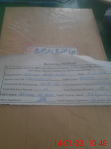 | Certified that this School was Inspected by the Undersigned MEA/DMO Today and the Information Stated Above is as Per Record. | |||||