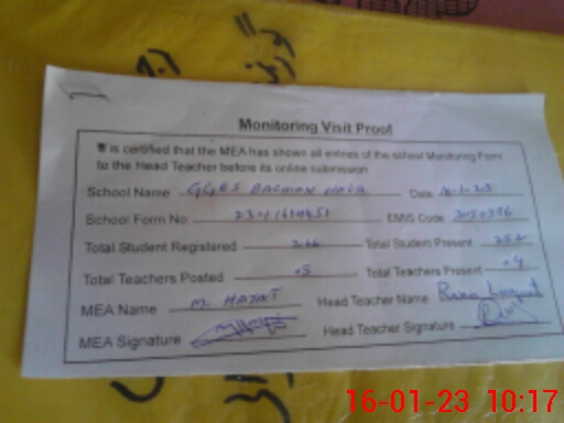 | Certified that this School was Inspected by the Undersigned MEA/DMO Today and the Information Stated Above is as Per Record. | |||||