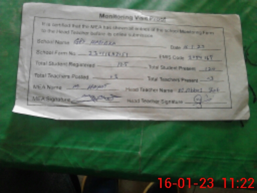 | Attendance Register | Head Teacher | MEA with School | Visit Proof |