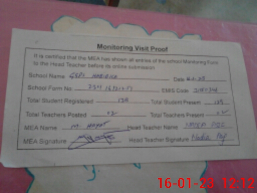 | Certified that this School was Inspected by the Undersigned MEA/DMO Today and the Information Stated Above is as Per Record. | |||||