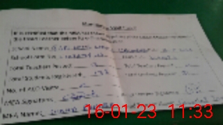 | Monitoring Date: 16-01-2023 | Start Time: 16-01-2023 11:00 AM | End Time: 16-01-2023 11:35 AM | Name of MEA: Sh**** Ra**** | |