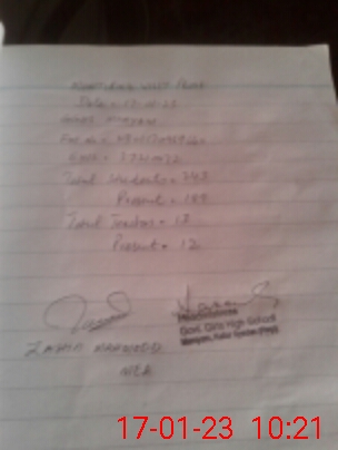 | Attendance Register | Head Teacher | MEA with School | Visit Proof |