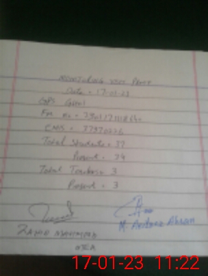 | Monitoring Date: 17-01-2023 | Start Time: 17-01-2023 11:11 AM | End Time: 17-01-2023 11:26 AM | Name of MEA: Za**** Me**** | |