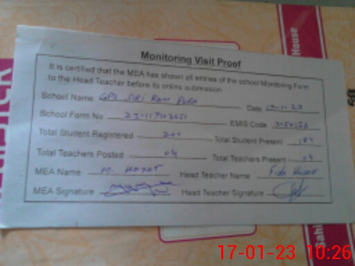 | EMIS Code: 31150156 | Name of School: GPS SIRI RAM PURA | |||