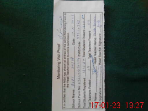 | Attendance Register | Head Teacher | MEA with School | Visit Proof |