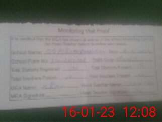 | Attendance Register | Head Teacher | MEA with School | Visit Proof |