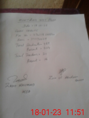 | Name: Za**** UlAb**** Ha**** Designation: (School Headmaster's/Headmistress's) I/C HEADMASTER Phone/Cell Number: 03**** |