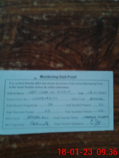 | Attendance Register | Head Teacher | MEA with School | Visit Proof |