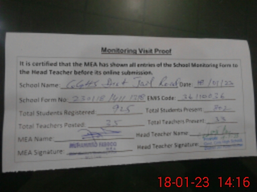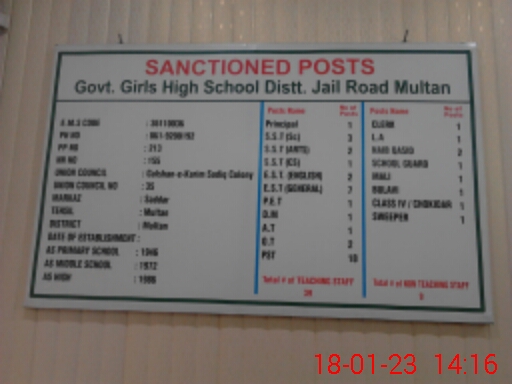 | EMIS Code: 36110036 | Name of School: GGHS DISTRICT JAIL ROAD MULTAN | |||