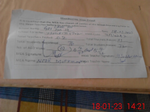| Attendance Register | Head Teacher | MEA with School | Visit Proof |