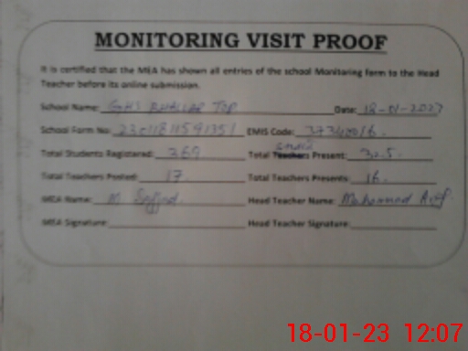 | EMIS Code: 37340016 | Name of School: GHS BHALLARTOP | |||